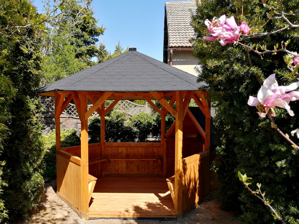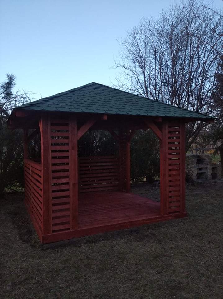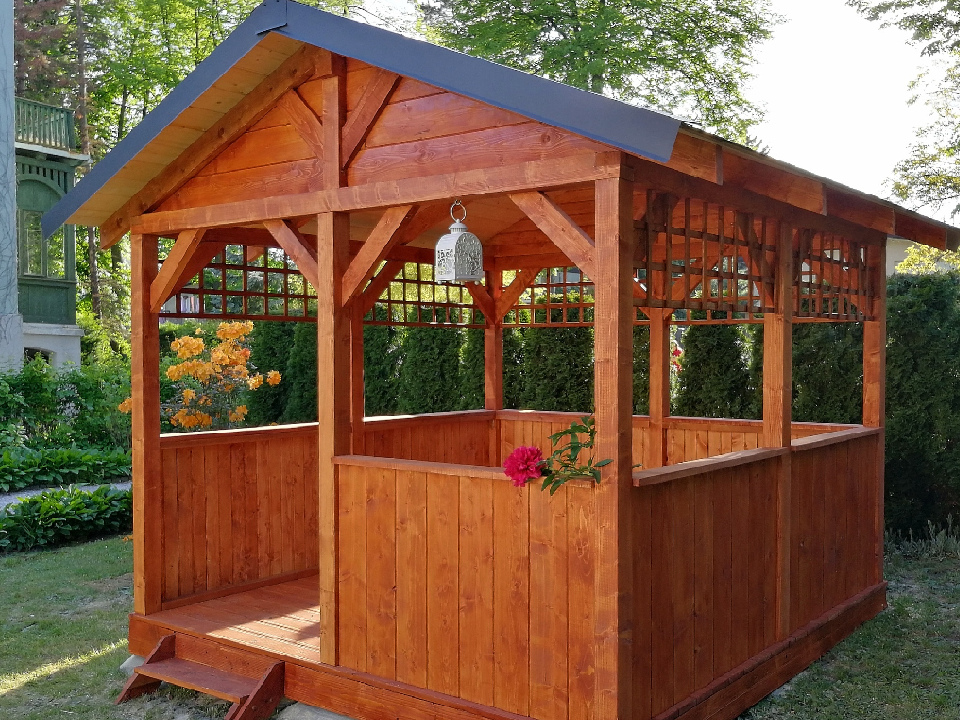 Projektujemy i wykonujemy pod indywidualne życzenie klienta altany ogrodowe w konstrukcji drewnianej w wysokiej jakości drewna (np. C24, KVH, BSH). w różnej kolorystyce.