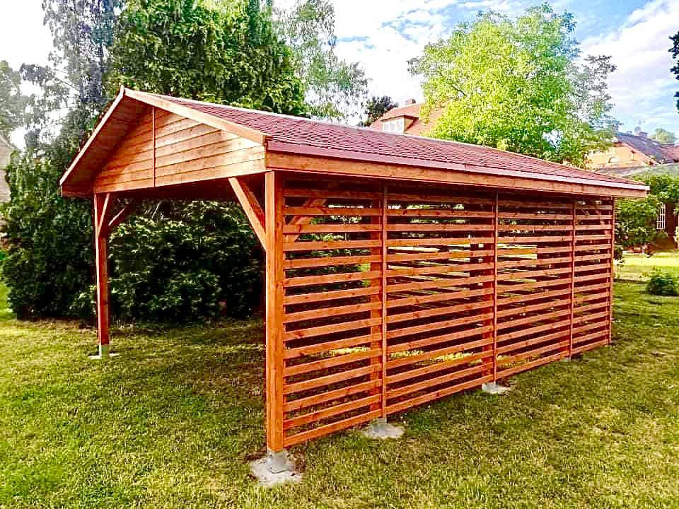 Wykonujemy wiaty garażowe z dachem jednospadowym, dwuspadowym z różnym pokryciem dachowym( gont bitumiczny,blachy, dachówka).Wiaty mogą być połączone z budynkiem lub wolnostojące.Wszystko wykonane pod indywidualne życzenie klienta z wysokiej jakości materiału oraz w różnej kolorystyce impregnacji. Wiaty stanowią doskonałą ochronę dla wszystkich pojazdów przed szkodliwym działaniem czynników atmosferycznych takimi jak śnieg,grad,deszcz,słońce .